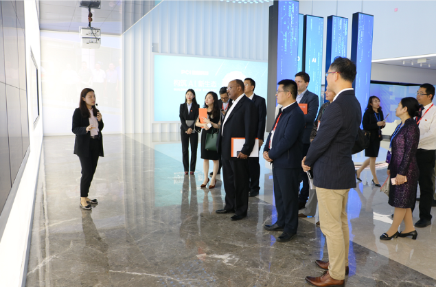 联合国副秘书长盖图一行正在参观番茄影视智能科技馆